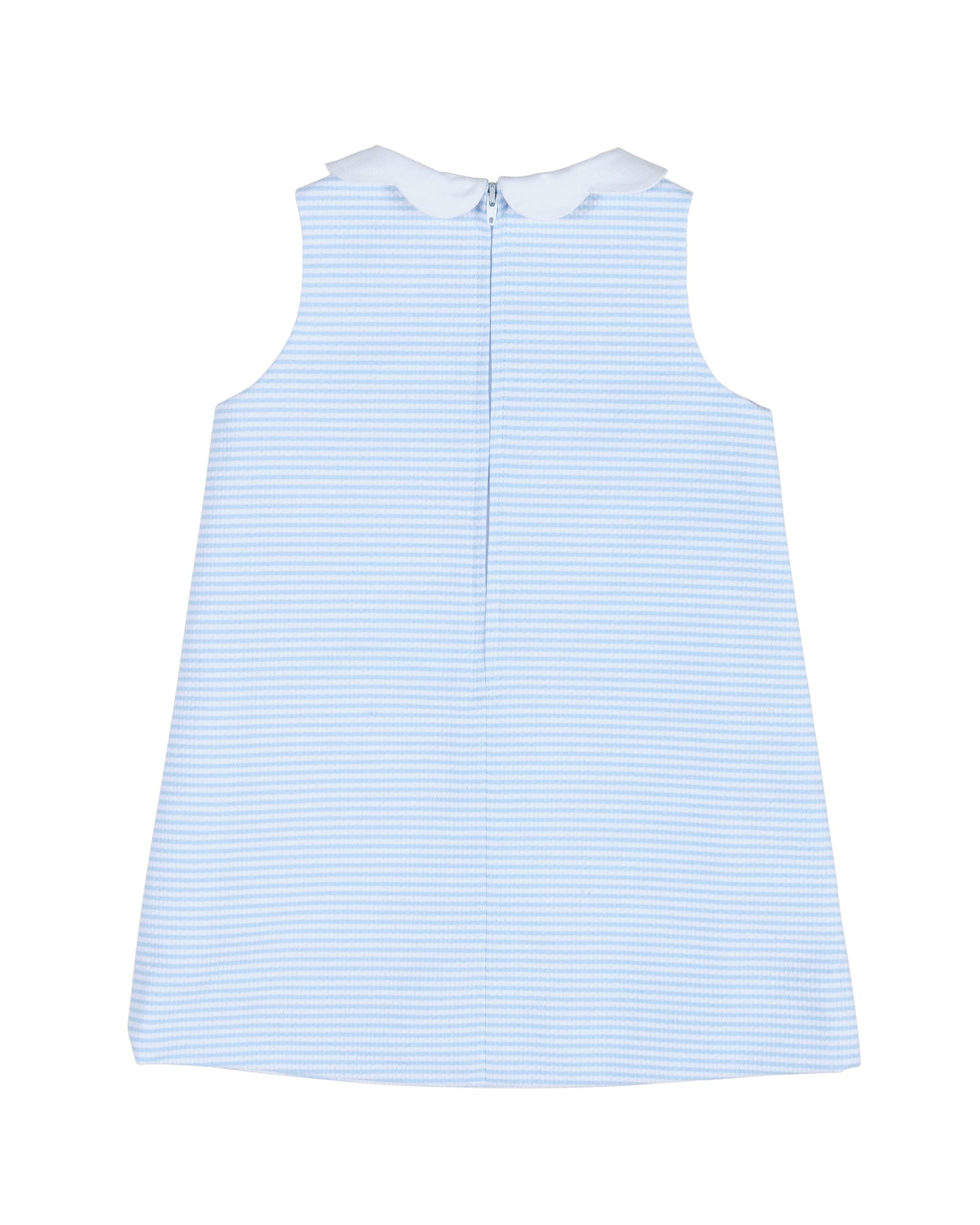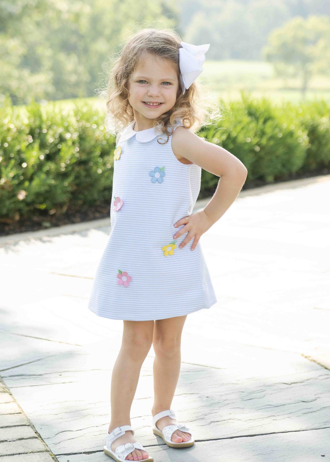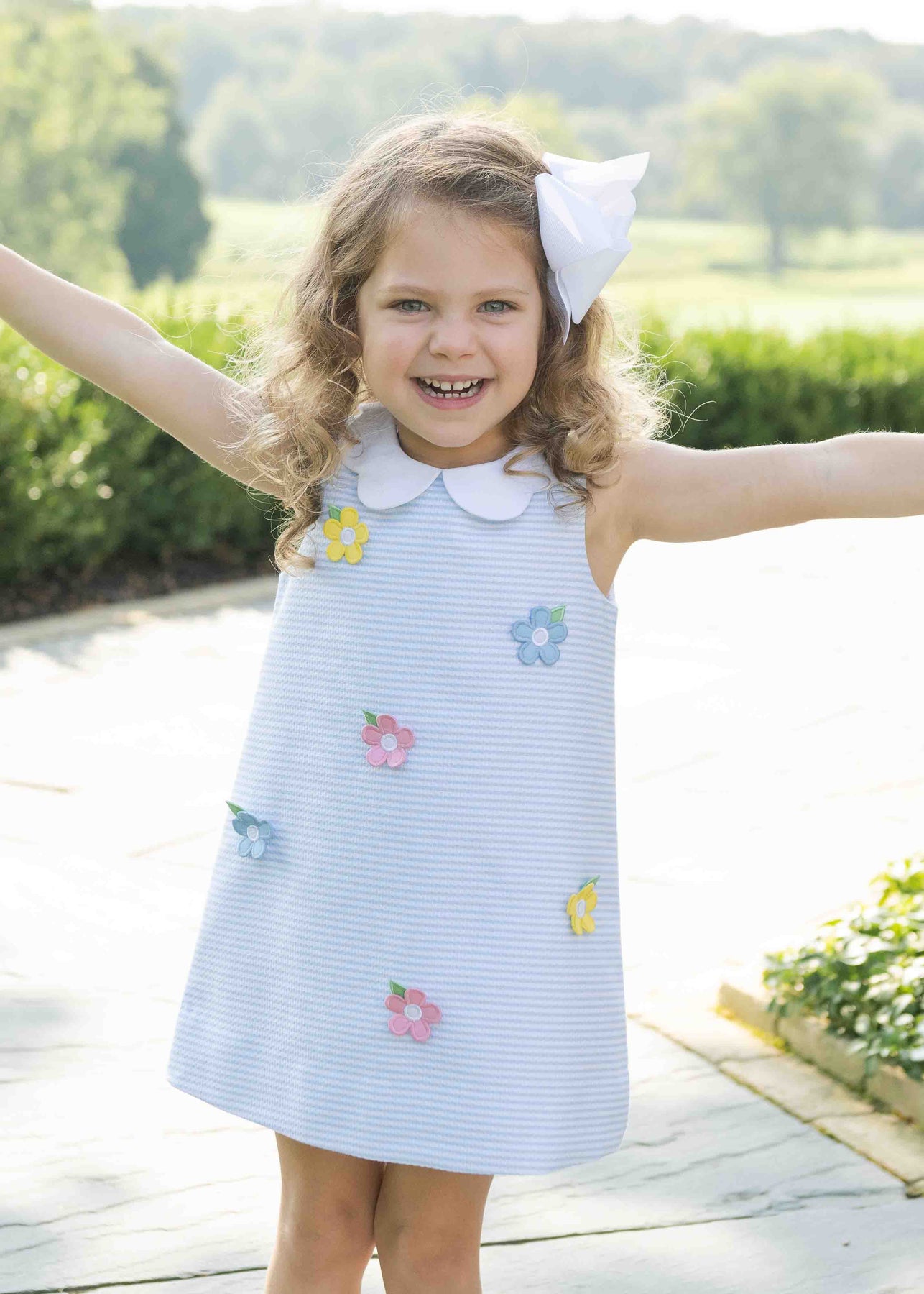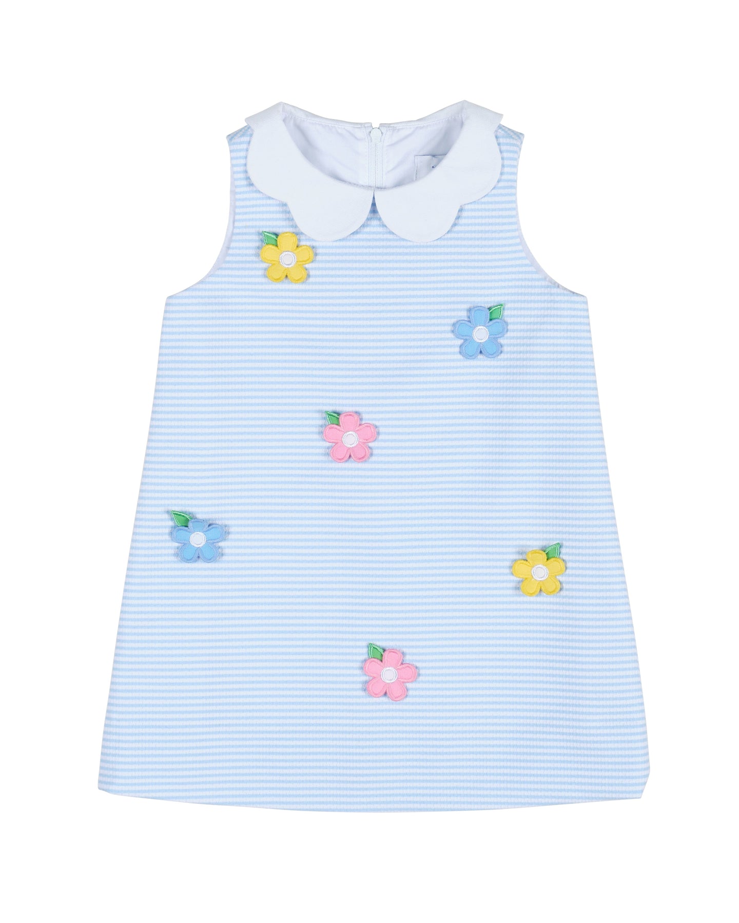 Stripe Birdseye Pique Dress with Petal Collar and Flowers